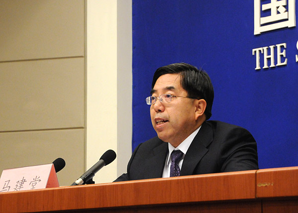國家統(tǒng)計局局長馬建堂在新聞發(fā)布會現(xiàn)場回答記者提問。(新華網 翟子赫 攝)