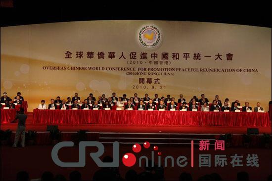 國際在線消息(駐香港記者 羅丹):為期兩天的“全球華僑華人促進中國和平統一大會”21日下午在香港拉開帷幕。來自中國內地、香港、澳門、臺灣以及全球60多個國家和地區的1500多位代表參會。