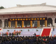 軒轅黃帝是中華民族的人文始祖,黃帝時代是中國文化的初創年代和源頭。清明軒轅黃帝公祭活動一年一度在陜西省黃陵縣橋山黃帝陵舉行,也是規模最大的黃帝祭典活動。據悉,今年參加清明公祭的人數達1萬人以上,是歷屆規模最大的一次。