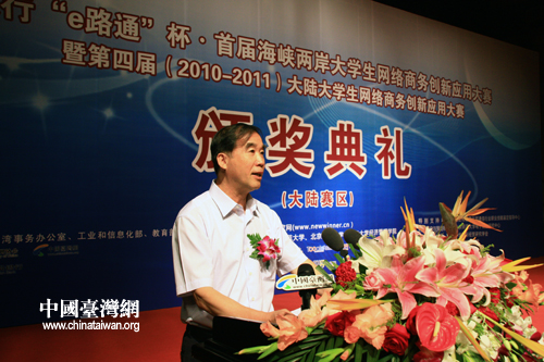 中國(guó)臺(tái)灣網(wǎng)7月28日北京消息 7月28日,經(jīng)過(guò)緊張的初賽、復(fù)賽和分賽區(qū)決賽,由中國(guó)互聯(lián)網(wǎng)協(xié)會(huì)和中國(guó)臺(tái)灣網(wǎng)共同主辦,中國(guó)建設(shè)銀行主協(xié)辦的建行“e路通”杯首屆海峽兩岸大學(xué)生網(wǎng)絡(luò)商務(wù)創(chuàng)新應(yīng)用大賽暨第四屆大陸大學(xué)生網(wǎng)絡(luò)商務(wù)創(chuàng)新應(yīng)用大賽大陸賽區(qū)決賽頒獎(jiǎng)典禮在北京交通大學(xué)隆重舉行。