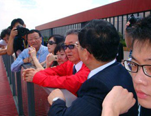 臺(tái)灣著名作家李敖今天攜妻子、兒女暢游世博園,雖然行程緊湊,李敖仍顯得精神奕奕,整個(gè)參觀過程始終心情愉悅,不僅笑稱自己是中國館的“第八紅”,在臺(tái)灣館(網(wǎng)上臺(tái)灣館)點(diǎn)燈祈福時(shí)還兩度祝愿“兩岸和平”。李敖和其家人在參觀中國館時(shí)還特地來到了60米觀景平臺(tái)。在60米觀景平臺(tái)的透明走廊上,李敖一舉粉碎“恐高”...