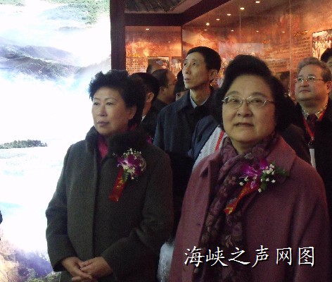 全國政協副主席、臺盟中央主席林文漪(右一)和中央統戰部副部長尤蘭田(左一)觀看展覽(張鵬攝)