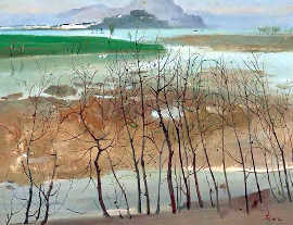 吳冠中:我把藝術看成人類文化重要的哨兵,它對人類文化起了很重要的作用,它是人類文化不可或缺的相當神圣的一部分。但是,我從法國回國后,讀到列寧說,“藝術是政治的螺絲釘”,我感到受到了重大的打擊,難以接受,從此開始了無窮的苦難。但是,還是要堅持自己內心的價值判斷。不過,在創作上,把藝術標準放在第一位有困難。怎么辦呢?我想到王國維所說的,一切景語皆情語。風景里是有情的,因此,我轉到風景畫的創作,用風景來表達我的藝術。因為風景畫與社會的關系不那么明顯,表現祖國之愛啊,母親大地啊,畫作比較好通過。那等于躲避在風景里了。