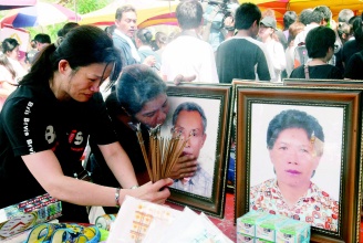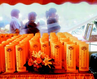 層層迭迭的牌位,代表挽不回的生命,梵唱聲中,家屬淚流不止,哭嚎聲此起彼落。鄉公所準備的400多個神主牌,全數用完還不夠。