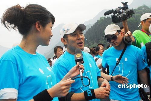 2009年5月10日,在“5·12”汶川大地震震中映秀鎮,李連杰攜吳彥祖、林心如、鐘麗緹、柯以敏、鐘漢良、沈星、張杰等眾多明星義工,開展中國紅十字會壹基金主辦的“壹家人,壹起走”大型戶外援建災區公益活動。來自各地的300多名媒體記者、志愿者和明星們一同走完了2公里的災區路。在半小時的路程中,完成了李連杰成立緊急救援聯盟等許多心愿,眾明星們的表現令人感動。 中新社發 善平 攝