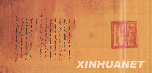 這是雍正元年(公元1723年)雍正皇帝封賞六世達賴喇嘛的敕諭。 新華社發 組圖:歷史檔案證明:歷世達賴喇嘛都經中央政府認定、冊封