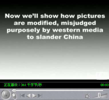 這段視頻在開篇就指出:“所有的西方媒體都‘興奮異常’的去報(bào)到那些所謂的‘真相’,現(xiàn)在我們就向大家展示一下,那些照片是怎樣的被西方媒體修改之后去詆毀中國(guó)的”。視頻中涉及的西方媒體包括德國(guó)的N-TV,圖片報(bào)(Bild Zeitung),RTL電視臺(tái),美國(guó)的華盛頓郵報(bào),這幾家媒體涉嫌將尼泊爾警察毆打示威者的圖片偷梁換柱的說成是中國(guó)警察在拉薩所為;而柏林早郵報(bào)(Berliner Mogenpost),BBC等媒體,則被批評(píng)將中國(guó)警方的"營(yíng)救"照片描述成"拘捕";美國(guó)的CNN是刻意刪去了右側(cè)向行進(jìn)中的軍車投擲石頭的人群的畫面,掐頭去尾給人以軍車肆虐拉薩街頭的政府暴力印象;德國(guó)的明鏡周刊也被指責(zé)使用錯(cuò)誤的文字標(biāo)題對(duì)圖片給予歪曲的暗示。