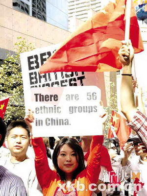 約6000以悉尼留學(xué)生及各行各業(yè)工作者為主的在澳華裔,4月13日走上街頭,舉行聲勢浩大的和平游行及集會,譴責(zé)“3·14”拉薩打砸搶燒暴力事件,抵制部分西方媒體不負責(zé)任的歪曲報道,聲援將于8月份舉行的北京奧運會。雖然在游行的后半程天降暴雨,絕大部分與會者仍冒雨堅持留在集會現(xiàn)場。如此大規(guī)模的愛國游行,在悉尼僑界史大概也算絕無僅有。除了悉尼外,墨爾本也有數(shù)千民眾由聯(lián)邦廣場出發(fā),舉行迎奧運反“藏獨”的游行活動。