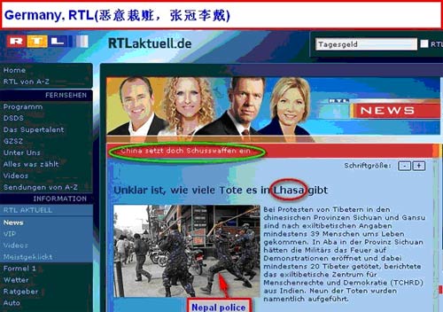 這是尼泊爾警察與示威者沖突的圖片,被德國RTL傳媒冠以“在拉薩的未知數(shù)量的死者”的標(biāo)題。