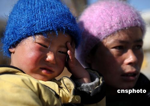 在拉薩市救助站內(nèi)接受救助的一對母女。3月22日,拉薩大昭寺的僧人到拉薩救助站慰問打砸搶燒事件中的受害者,并向他們發(fā)放了慰問金。中新社發(fā) 廖攀 攝