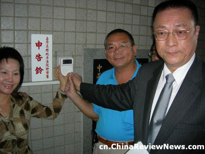 國民黨籍“立委”吳敦義(右)四日前往高雄地檢署按鈴控告前高雄市長謝長廷提供偽造緋聞錄音帶,致使選情逆轉,涉嫌違反“選罷法”,為八年前高雄市長選舉恩怨討公道。(圖片來源:中評網)