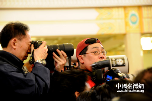 中國臺灣網3月18日北京消息 每年兩會的總理記者見面會,都是最受矚目的議程之一。各路媒體為了能搶占有利地形拍攝或提問,奇招不一而足。當大家把關注點齊齊對準臺上的總理時,媒體自己也成了這場新聞事件中難以置身事外的一員。 (李徽/文并圖)