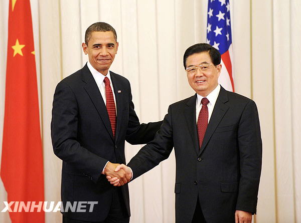 11月17日,中國國家主席胡錦濤和美國總統奧巴馬在北京人民大會堂共同會見中外記者。新華社記者李學仁攝