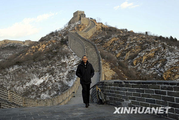 11月18日,美國總統(tǒng)奧巴馬在北京游覽八達(dá)嶺長城。新華社記者張鐸攝