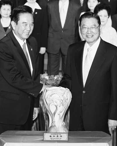 第四次兩岸兩會領(lǐng)導(dǎo)人會談,雙方交換禮物。
