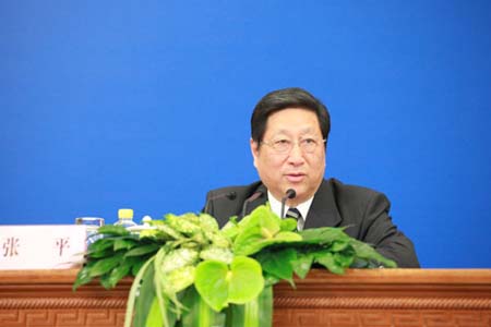 2011年3月6日,國家發展和改革委員會主任張平,國家發展和改革委員會副主任朱之鑫、徐憲平,談關于“十二五”規劃綱要,并答記者問。圖為國家發展和改革委員會主任張平。吳莼 攝