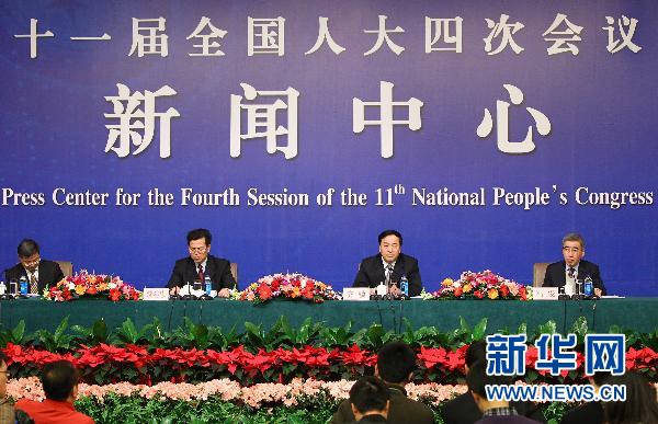 3月9日,十一屆全國人大四次會議在北京梅地亞兩會新聞中心多功能廳舉行記者會。住房和城鄉建設部副部長齊驥等就“保障性住房建設和房地產市場調控”等相關問題回答中外記者提問。新華社記者 邢廣利 攝