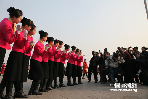 3月5日,十一屆人大四次會議在人民大會堂開幕。天安門廣場大會工作人員受到了記者的關注。各種造型的女服務員讓攝影記者不停地按下手中的快門。肖春陽、劉洋攝影報道
