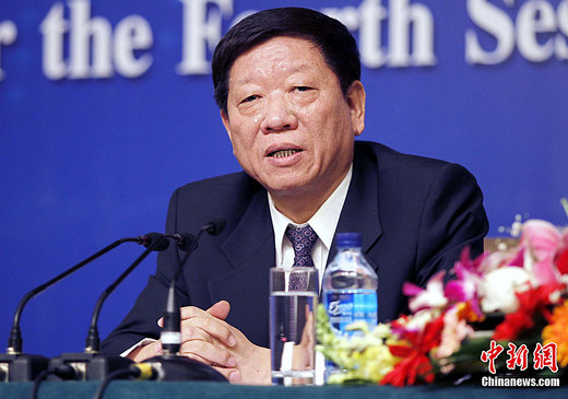3月8日上午,國家人力資源和社會保障部部長尹蔚民在全國人大舉行的新聞發布會上,就“農民工權益、大學生就業、城鄉住房、養老保險、工資差別”等社會熱點問題回答記者提問。中新社發 宋吉河 攝