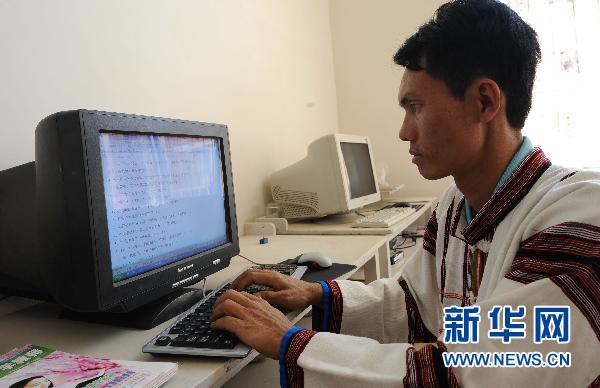 這是全國人大代表包布魯在云南省西雙版納傣族自治州景洪市基諾山基諾族鄉中心小學用電腦整理教學資料(2月25日攝)。新華社記者 藺以光 攝
