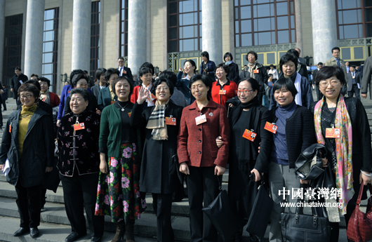 廣大女政協(xié)委員在人民大會堂前合影留念 。(中國臺灣網(wǎng) 發(fā))