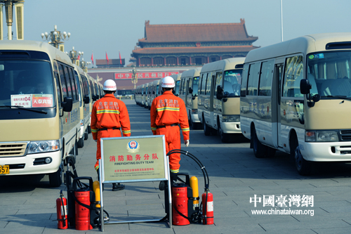 中國臺灣網3月9日北京消息 全國“兩會”期間,在天安門廣場看到,一輛輛排列整齊的大巴車穿著耀眼的金色外衣雄赳赳、氣昂昂地整裝待發,象列隊等待檢閱的士兵一般威武。記者登上一輛大巴車,看到座套全部是新換的,整輛車打掃得一塵不染,車廂內還能聞到淡淡的水果香味,暖暖的陽光透過車窗照進來,一切都顯得那么溫馨。司機劉德清師傅告訴記者,他是北京出租汽車旅游客運分公司的一名司機,接到保障兩會的任務后,他多次對車輛進行維護保養,里里外外把車擦了好幾遍。
