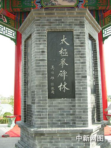 據(jù)介紹,整個太極文化碑廊東西長115米,鑲嵌140多塊碑刻。碑廊東要兩端及中間各建一碑亭,吳伯雄先生題寫的“太極拳碑林”及劉炳南先生題寫的“太極文化化碑苑”分別放置在中間碑亭的正南、正北位置。