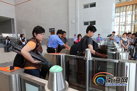 境外媒體記者走出東環鐵路三亞火車站(南海網記者 駱云飛)