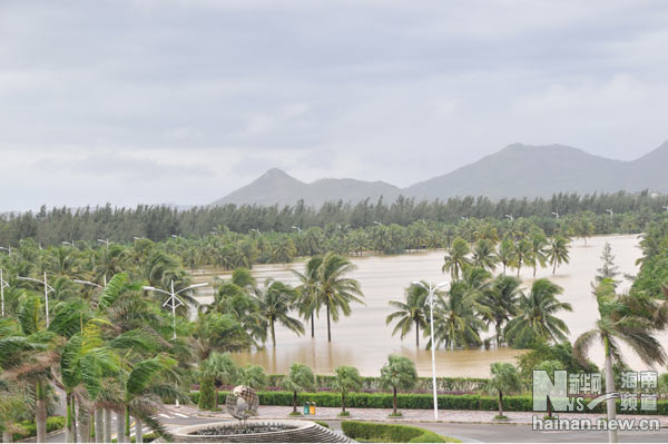 資料圖片:去年洪災(zāi)期間,博鰲高爾夫球場一片汪洋,球道水深2米。中遠博鰲提供