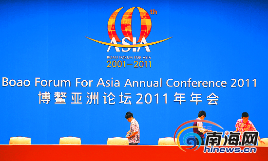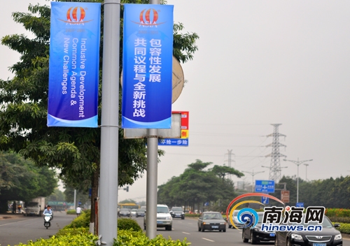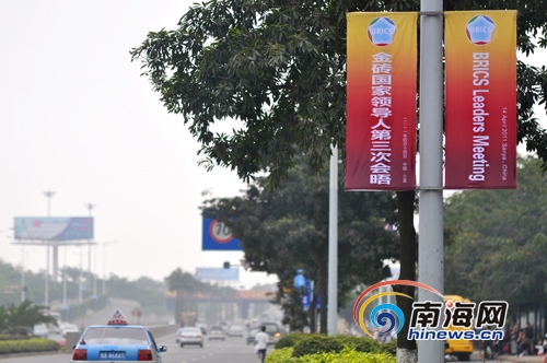 2011博鰲亞洲論壇年會和金磚國家領(lǐng)導人第三次會晤即將在海南省舉行。6日上午,為迎接盛會的召開及來自世界各地的嘉賓,海口的龍昆路、海府路、國興大道等主要路段均已掛上標語、橫幅等營造盛會氣氛。