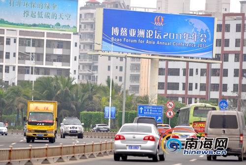 豎立在海南省海口市海府路的大廣告牌提示人們,離2011年博鰲亞洲論壇的日期越來越近。南海網(wǎng)見習記者 秦彥 攝