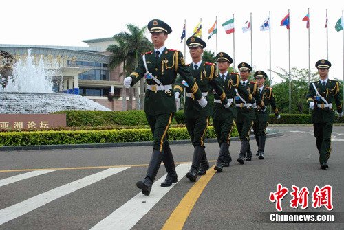 擔負安保任務的武警官兵開始博鰲論壇主會場巡邏