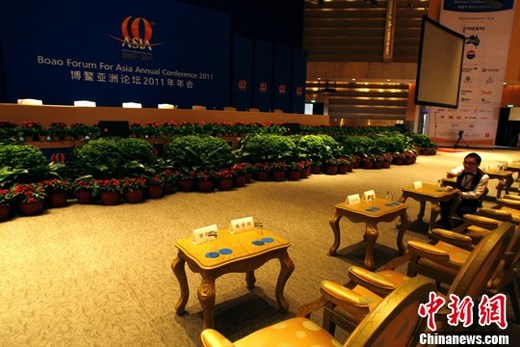 4月13日,博鰲亞洲論壇大會在海南博鰲準備就緒。4月14至16日,博鰲亞洲論壇2011年年會將在此舉行,今年年會的主題是“包容性發展:共同議程與全新挑戰”。中新社發 張宇 攝
