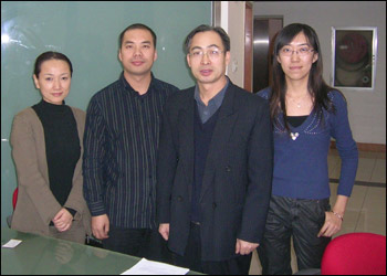 2006年12月31日,中國社會科學院臺灣研究所王建民研究員(右二)接受中國國際廣播電臺采訪。(圖片來源:國際在線)