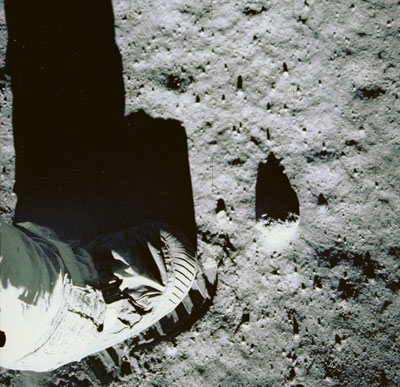 阿波羅11號(hào)航天員踏上月面,實(shí)現(xiàn)了人類登月的壯舉