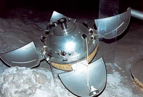 圖1.1959年9月12日發射的月球2號,兩天后飛抵月球,在月球表面的澄海硬著陸,成為到達月球的第一位使者,首次實現了從地球到另一個天體的飛行。它載的科學儀器艙內的無線電通信裝置,在撞擊月球后便停止了工作。