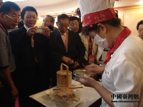 海外中國和平統一促進會考察團成員在觀看狗不理包子的制作 (攝影:趙穎芳) |