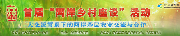 據(jù)了解,本屆“兩岸鄉(xiāng)村座談”活動以開創(chuàng)兩岸鄉(xiāng)村合作新模式,完善兩岸基層農(nóng)民交流平臺為指導(dǎo)思想,力求通過活動切實推動兩岸農(nóng)業(yè)交流深入基層,促進臺灣農(nóng)業(yè)、漁業(yè)重點鄉(xiāng)村和基層農(nóng)業(yè)經(jīng)濟合作組織與大陸的鄉(xiāng)村及農(nóng)業(yè)專業(yè)技術(shù)組織加強聯(lián)系和溝通,實現(xiàn)兩岸農(nóng)業(yè)優(yōu)勢互補、合作雙贏。來自兩岸的鄉(xiāng)村基層代表、農(nóng)業(yè)專家及業(yè)務(wù)主管部門負責(zé)人等近400位嘉賓就新農(nóng)村建設(shè)與鄉(xiāng)村旅游、農(nóng)民合作經(jīng)濟組織與農(nóng)產(chǎn)品運銷、農(nóng)業(yè)實用技術(shù)培訓(xùn)與服務(wù)等三個議題進行座談。