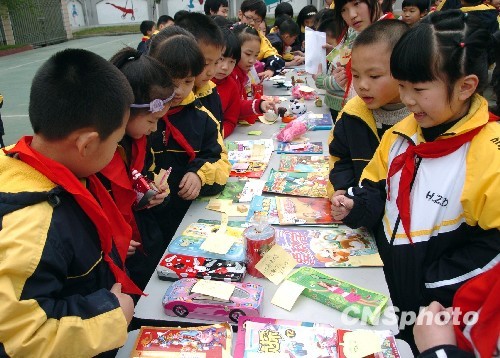 3月29日,杭州大成實(shí)驗(yàn)學(xué)校的學(xué)生在義賣捐助活動(dòng)中挑選自己喜愛(ài)的物品。當(dāng)日中午,杭州大成實(shí)驗(yàn)學(xué)校開(kāi)展“情系云貴小伙伴”的義賣捐助活動(dòng)。該校學(xué)生各自都捐出了自己喜愛(ài)的書(shū)、玩具、學(xué)具等,然后進(jìn)行相互間的義賣,義賣所得將捐助云貴干旱災(zāi)區(qū)。經(jīng)過(guò)一個(gè)中午的活動(dòng),共計(jì)募得捐款一萬(wàn)余元。