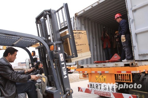 3月30日,天津市水利系統(tǒng)緊急組織的移動發(fā)電機、水泵等首批救災(zāi)物資啟程運往貴州旱區(qū)。中新社發(fā) 高群 攝