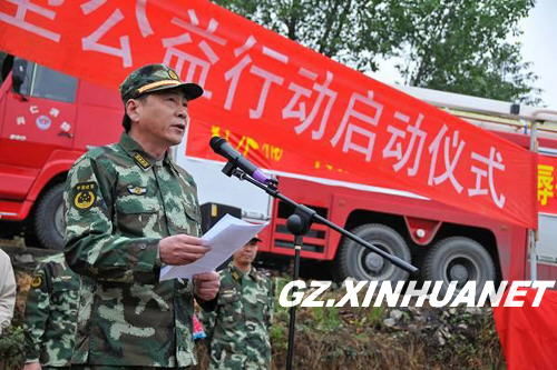 貴州省消防總隊總隊長吳玉根在“紅水桶”行動啟動儀式上致辭。新華社記者 李勁峰攝