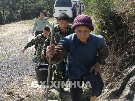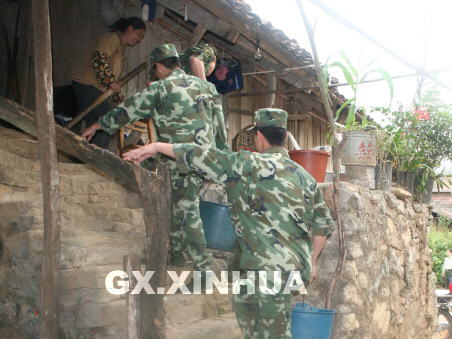 4月9日下午,武警百色市邊防支隊(duì)的“義務(wù)送水小分隊(duì)”將水送到群眾家中。(梁程 攝)