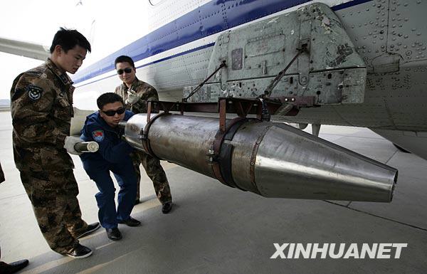 3月29日,機務人員給飛機加掛人工增雨彈。新華社發(劉應華 攝)