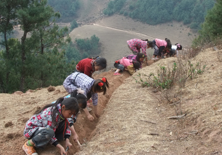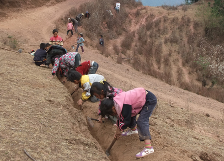 中國日?qǐng)?bào)網(wǎng)消息:大旱當(dāng)前,500多人的南澗鎮(zhèn)復(fù)興村竹林社嚴(yán)重受災(zāi),因旱造成人畜飲水、生產(chǎn)生活用水異常困難。掛鉤單位南澗縣統(tǒng)計(jì)局捐資幫扶7000元,并動(dòng)員村民,投工投勞,挖溝渠埋水管,及時(shí)從四公里外引來了泉水,緩解了旱情。在引水工程中,連孩子們也沒落下,扛上小鋤頭,甚至用一雙雙小手刨起了土,積極為抗旱竭盡自己的綿薄之力。
