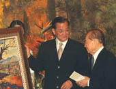 2005年5月2日,連戰向汪道涵轉交辜振甫當年的畫作]]>
