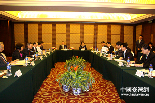 海協會專家團與海基會食品衛生專家團今天上午在北京就問題奶粉事件和兩岸建立食品安全溝通聯系機制等事宜舉行座談(李徽 攝)