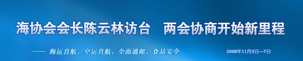 2008年11月3日,海協(xié)會會長陳云林率團訪臺,兩會最高領導人將在臺北進行會談,協(xié)商兩岸海運直航、空運直航、郵政合作、食品安全等議題并簽署協(xié)議,還將就兩會下輪協(xié)商議題安排、加強兩會聯(lián)系與交流等問題交換意見、做出規(guī)劃。