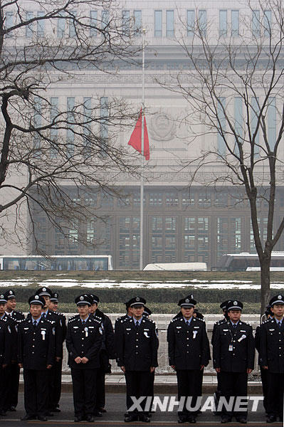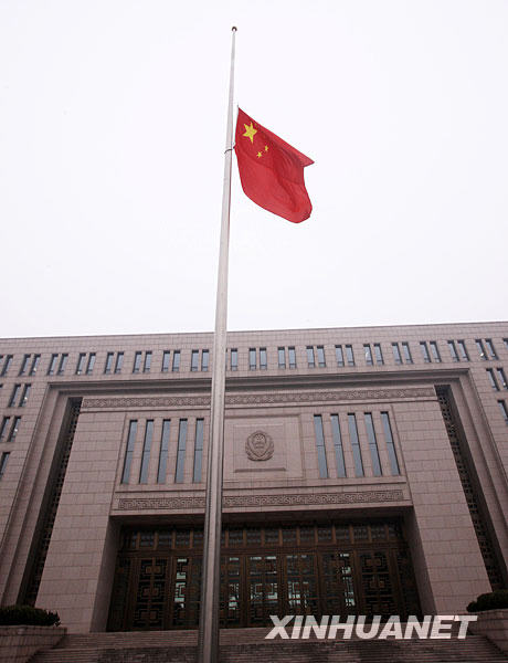 1月19日,根據(jù)國(guó)旗法相關(guān)規(guī)定,為悼念八位海地地震遇難中國(guó)維和警察,公安部下半旗志哀。新華社記者 陳建力 攝