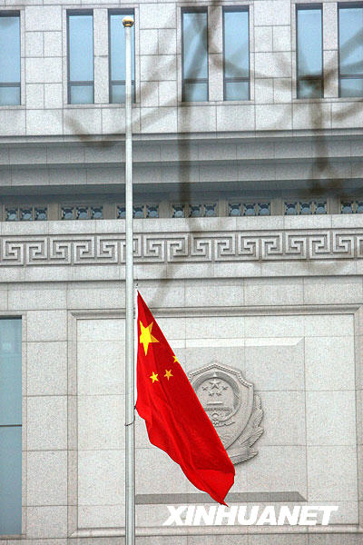 1月19日,根據國旗法相關規定,為悼念八位海地地震遇難中國維和警察,公安部下半旗志哀。 新華社記者唐師曾攝