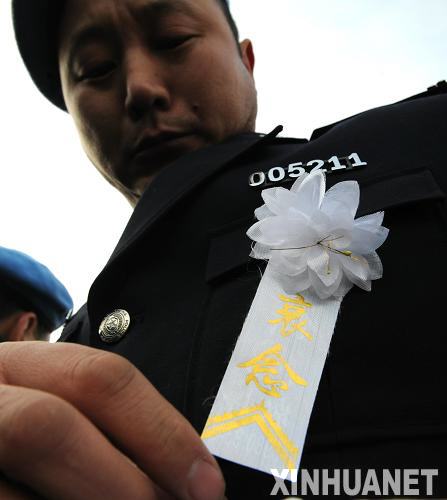 1月20日,向海地地震遇難中國維和警察遺體送別儀式在北京八寶山革命公墓禮堂舉行。這是一位曾經參加過海外維和任務的警察準備進入禮堂送別戰友。新華社記者謝環馳攝